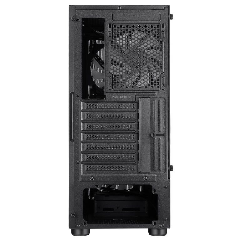 Compatible con placas base ATX / Micro ATX / Mini ITX, este chasis ofrece espacio suficiente para tarjetas gráficas de gran tamaño, sistemas de refrigeración eficientes y una organización interna limpia para un armado cómodo y ordenado.