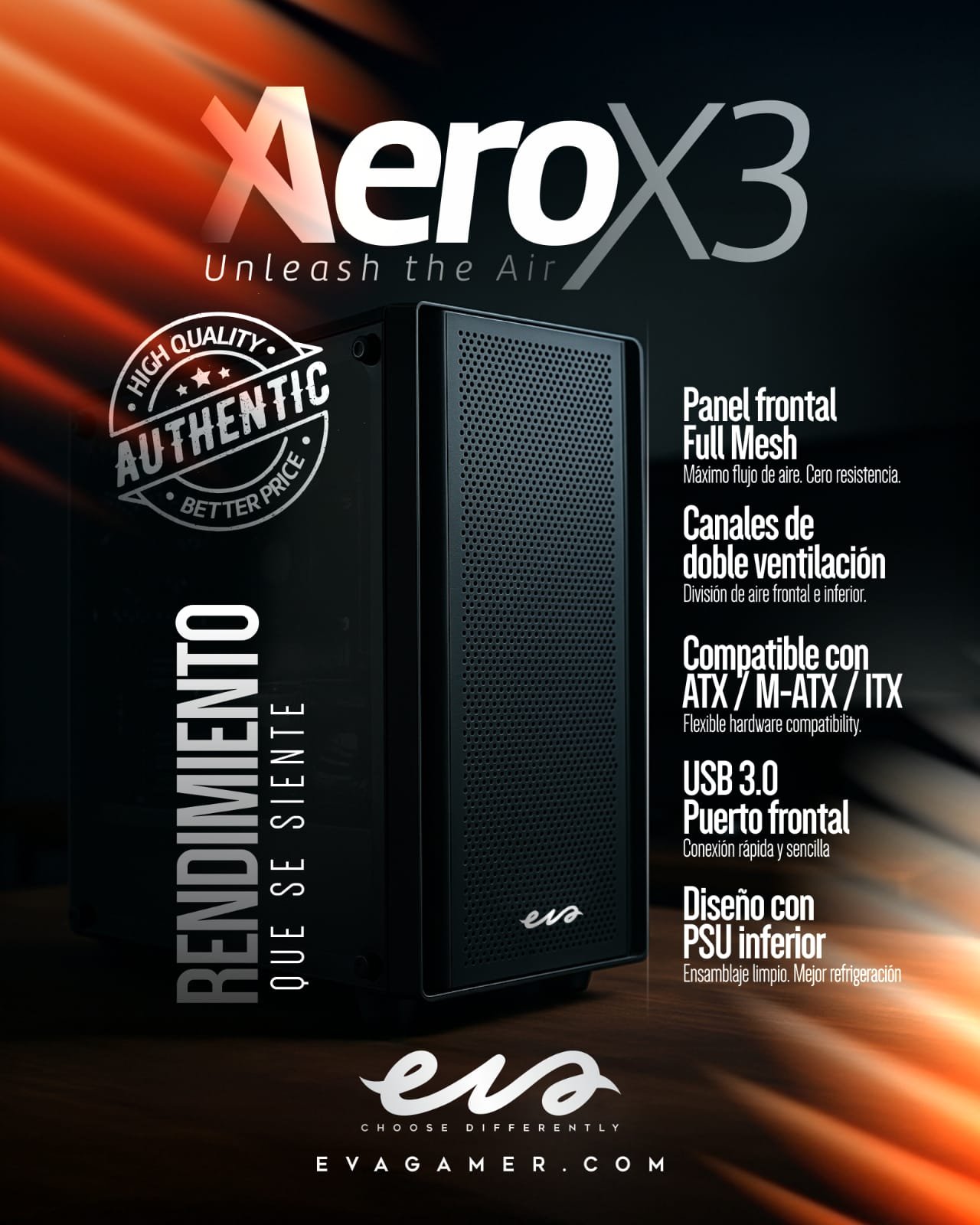 Ya seas un entusiasta de los videojuegos, un creador de contenido o un profesional que necesita potencia confiable, el Chasis Gaming Eva Aero X3 es la base ideal para tu máquina definitiva.